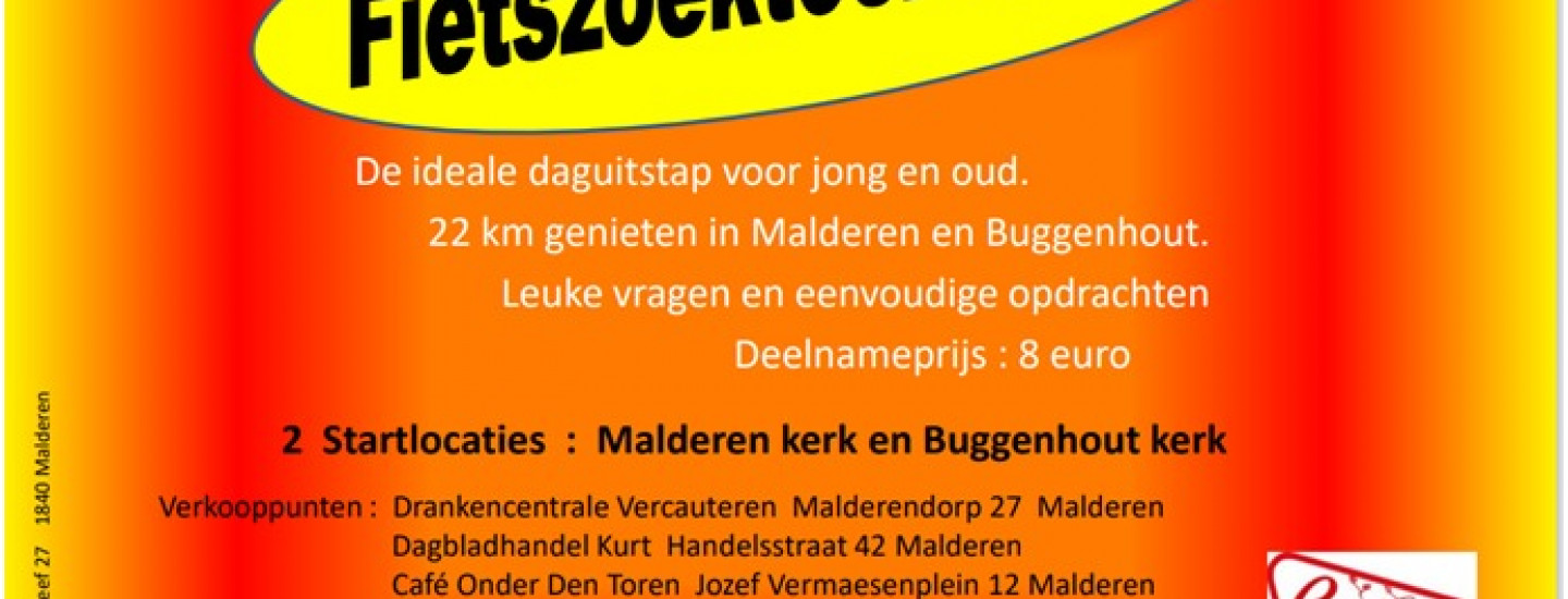 De fietszoektocht loopt van 5 juni tot 10 augustus. Deelnameboekjes met de route, vragen en opdrachten zijn vanaf 5 juni voor 8 euro te koop bij: Drankencentrale Vercauteren, Malderendorp 27, Malderen Dagbladhandel Kurt, Handelsstraat 42, Malderen Café Onder Den Toren, Jozef Vermaesenplein 12, Malderen Letterhuis Katrien, Kerkstraat 24, Buggenhout Er zijn 2 mogelijke startlocaties: Malderen kerk Buggenhout kerk