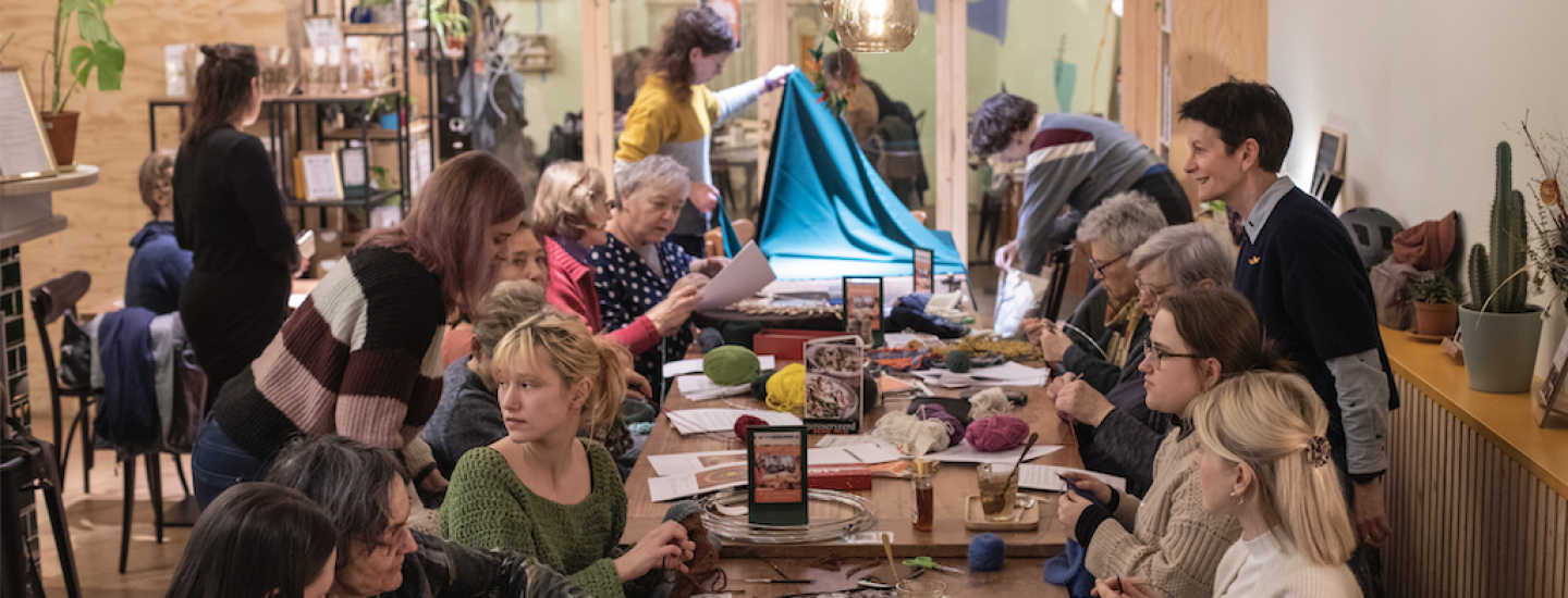 Met verschillende buurtbewoners haken we samen een grote straatoverkapping die tijdens 100In1Day wordt opgehangen in het straatbeeld.